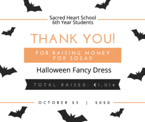 I NEED HELP NOW! 041 984 8754 Sacred Heart School Halloween Fancy Dress A big thank you to Sacred Heart School 6th year students, who organised a Halloween Fancy Dress and raised €1,014 on 23rd October for SOSAD Ireland! If you would like to contribute to our charity, please click: [tcb_logo href=’https://sosadireland.ie’ data-id-d=’11’ […]